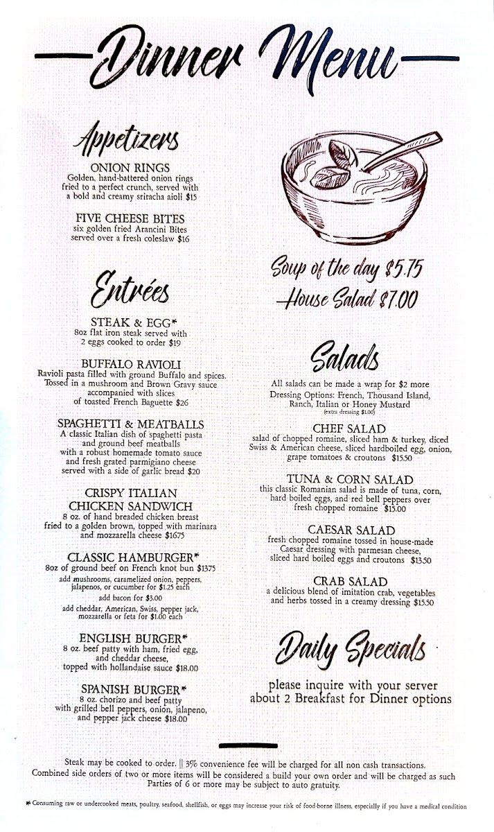 Welcome to Euro Cafe, a hidden gem located at 237 Firehole Ave, West Yellowstone. This charming establishment is celebrated for its warm ambiance and exceptional service. The menu is a delightful fusion of hearty entrees and refreshing salads that cater to a variety of tastes. For those craving a classic, try the Spaghetti & Meatballs or the uniquely seasoned Buffalo Ravioli, each prepared with rustic flair.