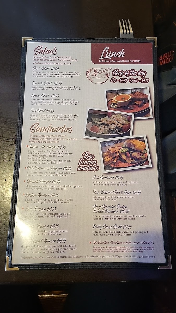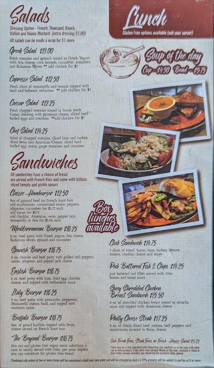 Salads like the Tuna & Corn Salad and Chef Salad offer a fresh reprieve and complement any meal perfectly. Don't miss the indulgent House Made Crepes for dessert – they’re a sweet finish to your dining experience!